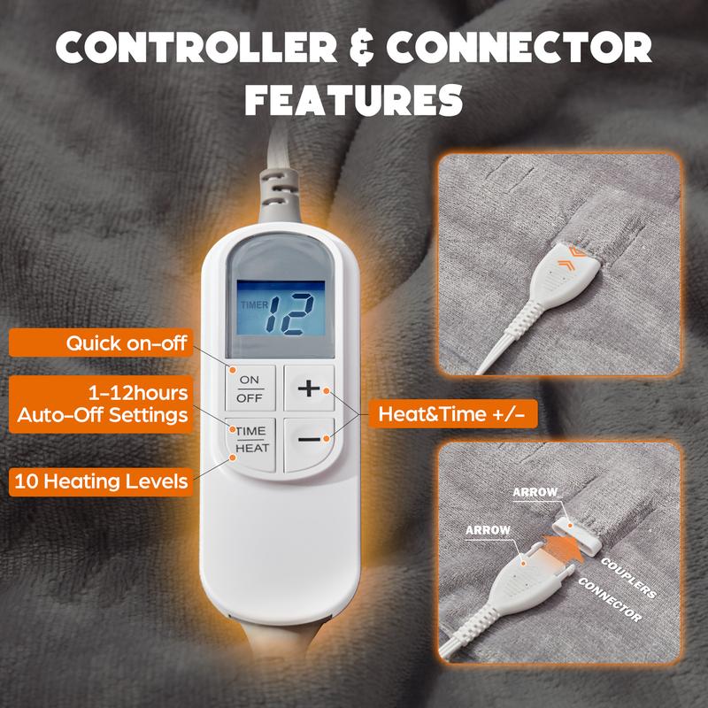 The Heat Blanket includes a built-in timer with 4 auto shut-off settings (1, 2, 4, or 8 hours), so you can relax worry-free.